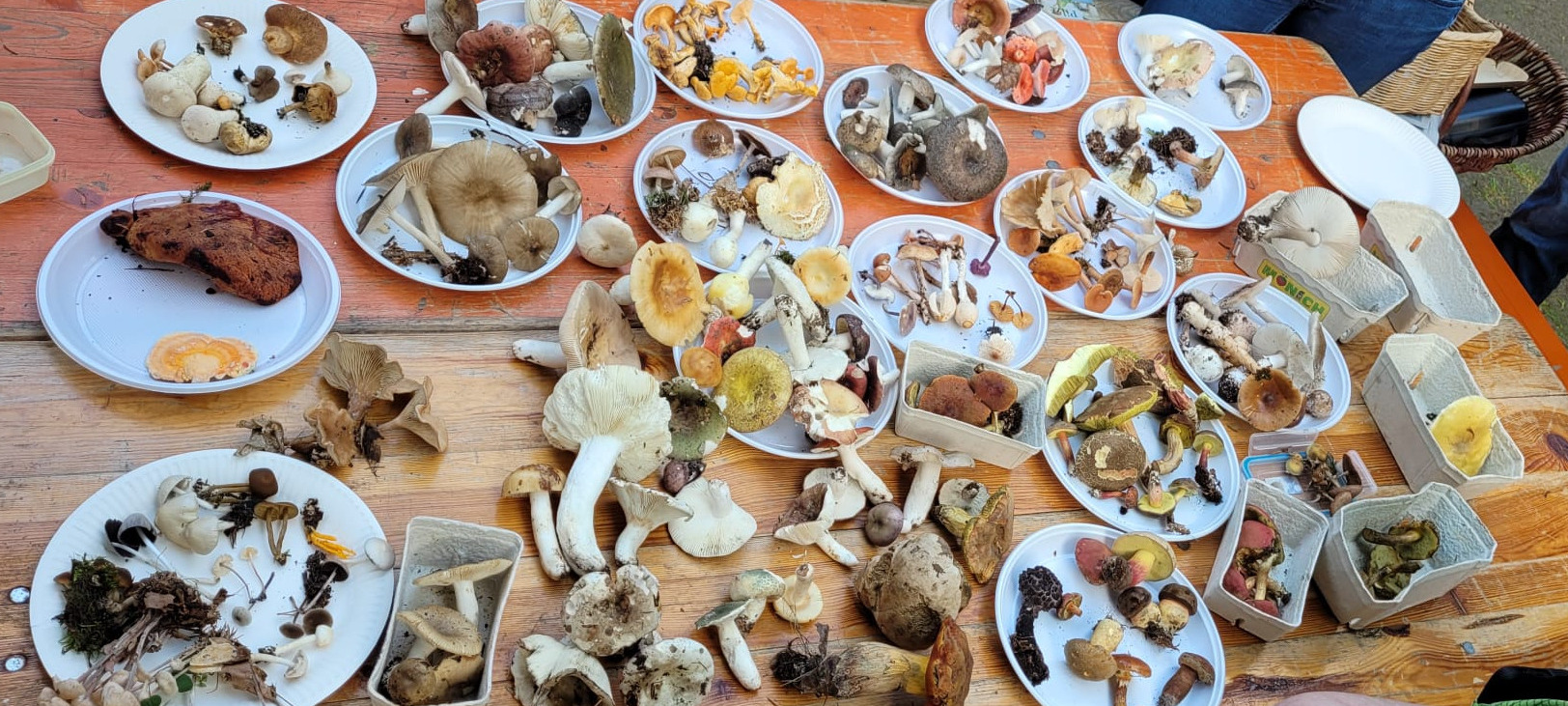Bei richtig gutem Pilzwetter fanden sich zum Bestimmungsabend viele Teilnehmer und noch viel mehr Pilze.